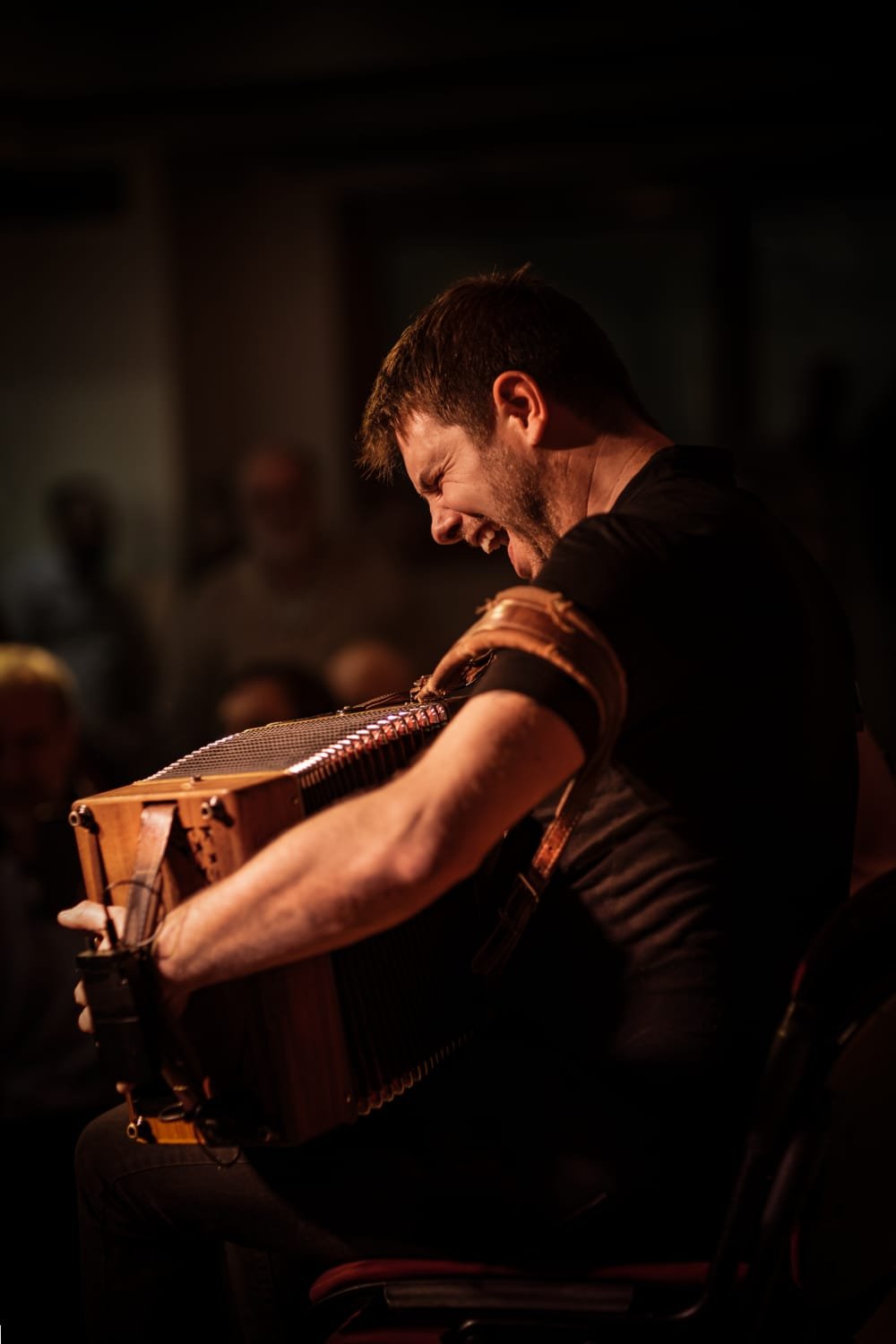 Autodidacte depuis 1997, Aurélien Claranbaux évolue avec aisance entre répertoire, compositions et improvisation, mêlant ces trois dimensions avec une sensibilité unique. Puisant ses influences dans des horizons variés – des musiques à danser du Centre-France et de Bretagne au jazz, rock, rap et musiques du monde – il insuffle à son jeu un groove singulier, toujours ancré dans l’esprit des musiques traditionnelles. Sur scène, il met sa polyvalence musicale au service de la danse et de l’écoute, proposant un voyage immersif à travers son projet solo. Entre mélodie, rythmique, improvisation et nuances, il invite le public à une exploration sonore où chaque morceau devient une nouvelle porte vers des univers inattendus.